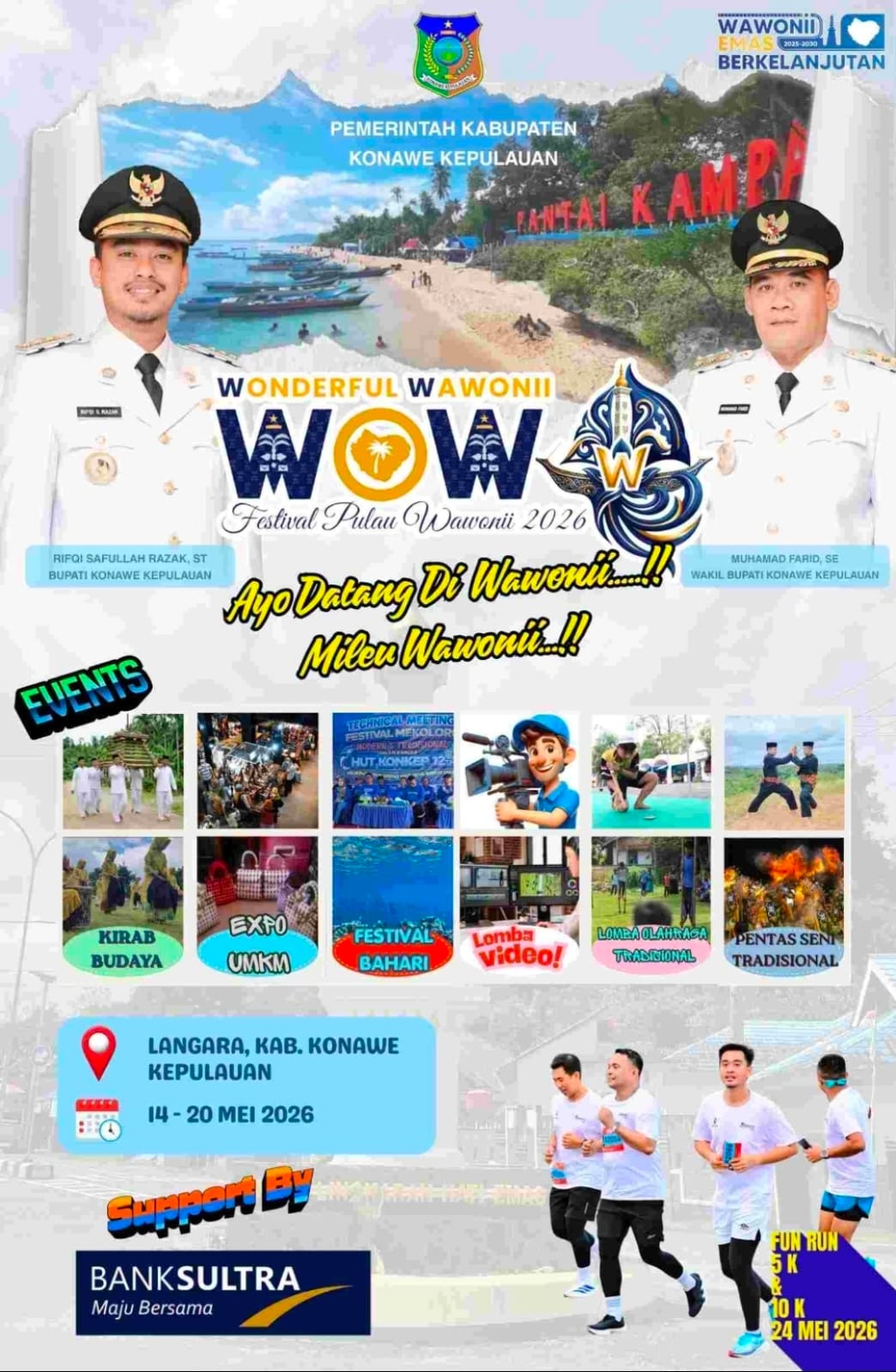Langara, umbaran.id – Pemerintah Kabupaten Konawe Kepulauan (Konkep) terus menunjukkan komitmennya dalam mendorong pembangunan di berbagai sektor. Tidak hanya fokus pada pembangunan fisik, pemerintah daerah juga akan mempromosikan potensi pariwisata, budaya, dan ekonomi kreatif yang dimiliki Pulau Wawonii.